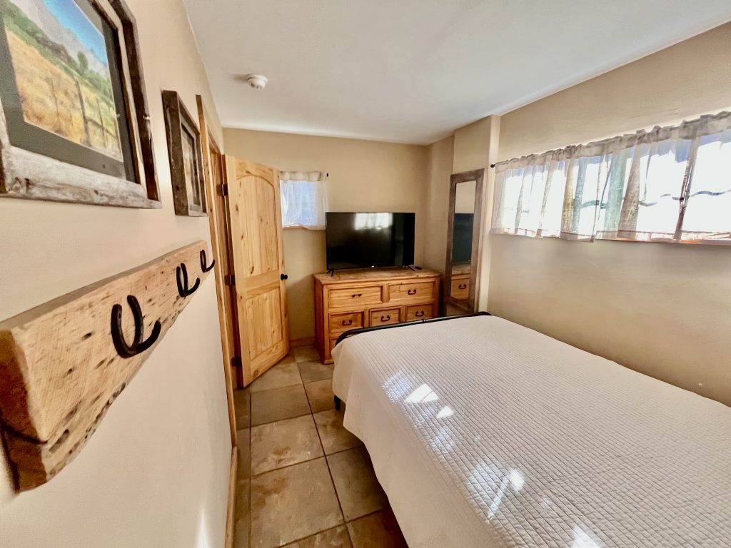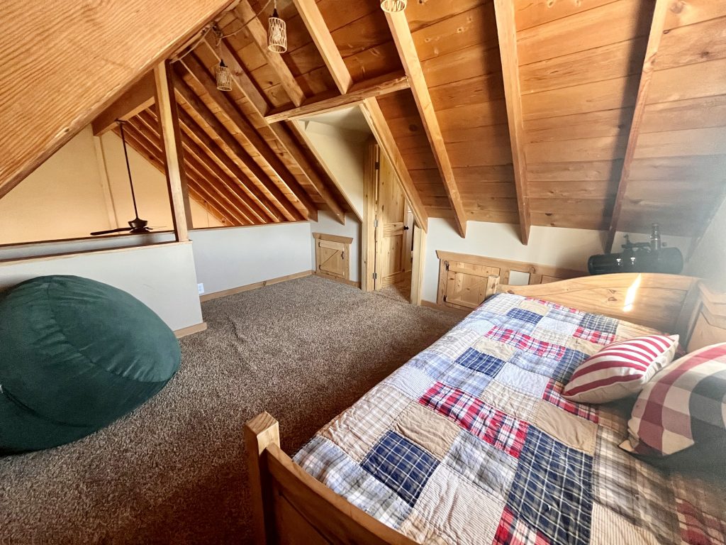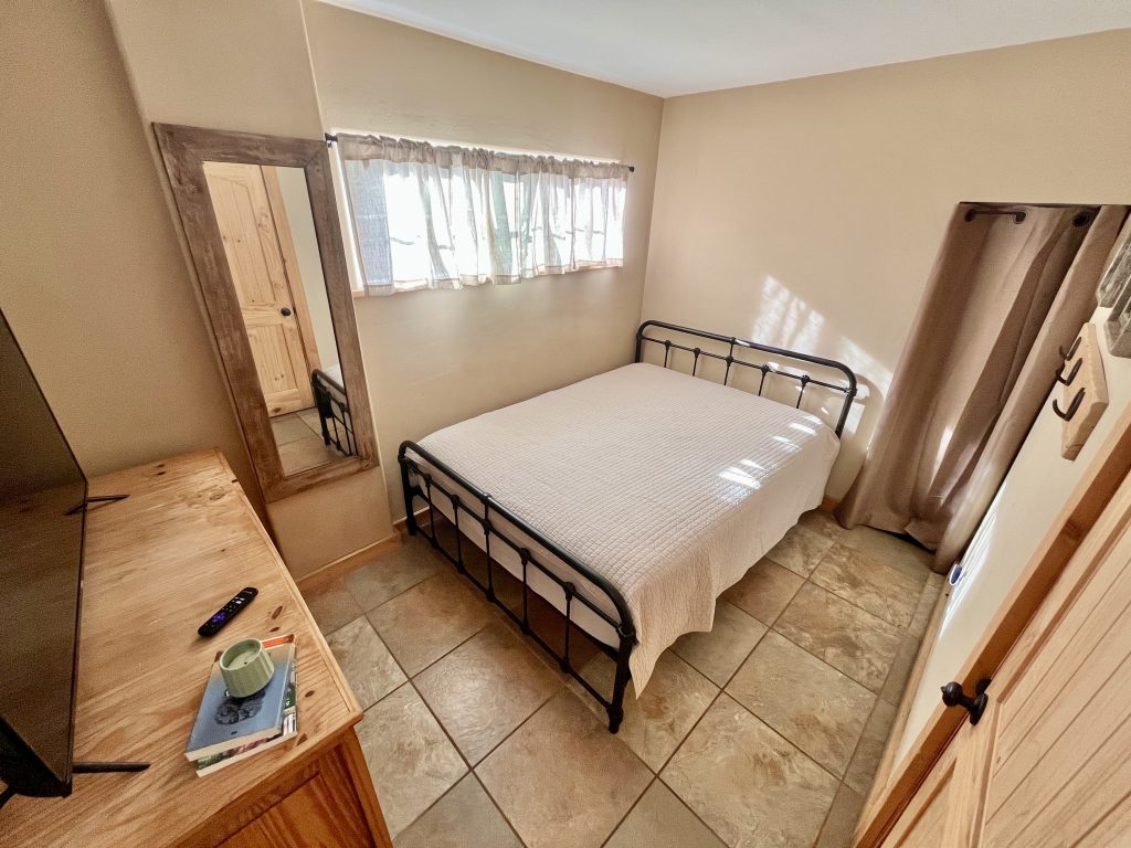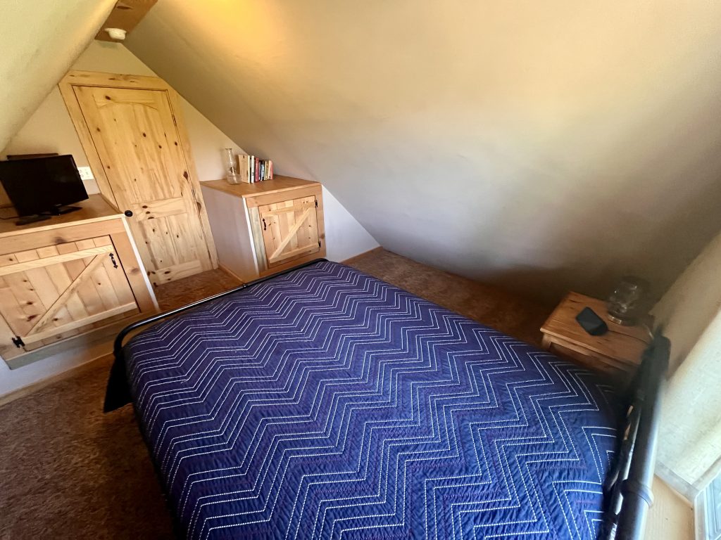The downstairs bedroom is at the front of the cabin and the most easily accessible.